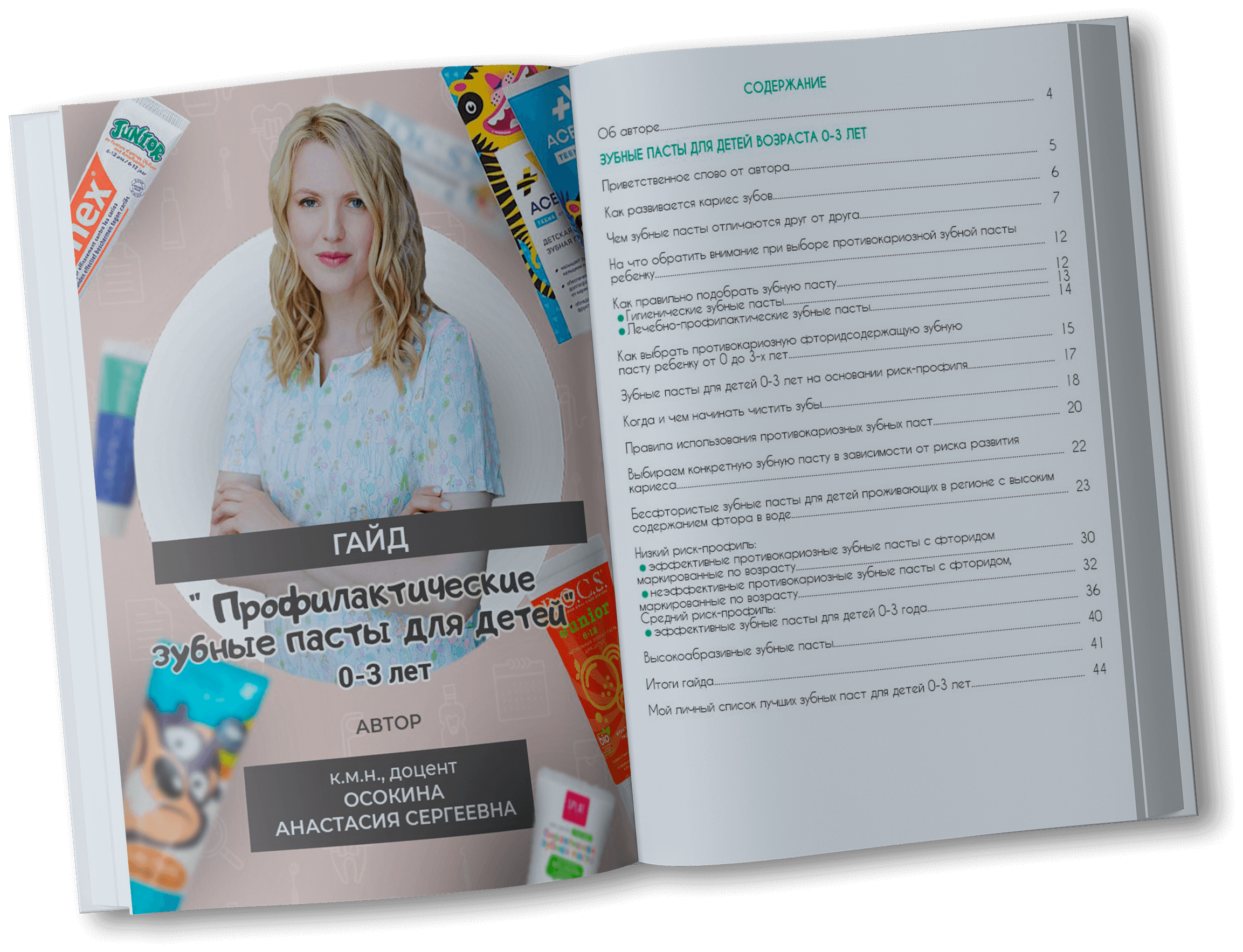 +/- 50 страниц обзоров лучших зубных паст для детей, на основании международных рекомендаций